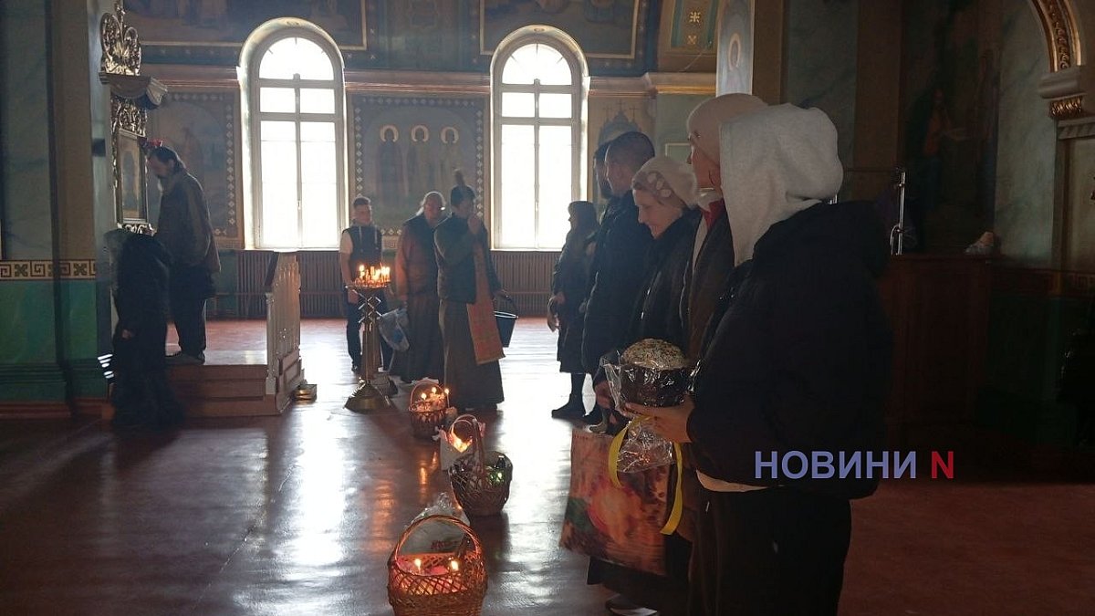 Через негоду традиційний формат освячення довелося змінити. Якщо зазвичай люди вишиковуються на доріжках біля храму, а священник обходить їх зі святою водою, то цього разу обряд проводили всередині церкви.